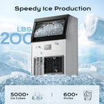 - 200 lbs Daily Ice Production: Using a high-efficiency R-290 compressor and air cooling, Coolake produces up to 200 lbs. of crystal clear ice daily, this unit will never leave you high and dry in the ice department and transform your home bar or kitchen into a haven for premium beverages. The interior self-contained ice bin can store up to 50 lbs. to help save you precious time and use ice without waiting.