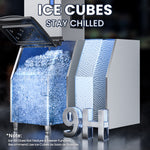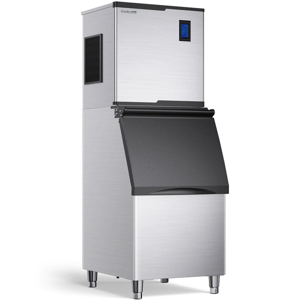 With a daily ice production capacity of 550 pounds and a storage capacity of 360 pounds, it can meet the high demand for ice in various commercial settings such as restaurants, bars, hotels, and convenience stores. Featuring an advanced control panel, it allows for real-time monitoring of the machine's working status, providing you with instant information on its performance. It also features automatic diagnosis, quickly identifying any issues. Additionally, with the one-touch automatic cleaning function, maintaining the cleanliness of the machine is a breeze. Constructed from stainless steel, this ice machine is not only visually appealing but also extremely durable. The ice storage bin provides effective insulation up to 9H. Its high ice production capacity, large storage bin, advanced control panel, and automatic cleaning function make it an ideal choice for any business looking for a reliable ice-making solution.