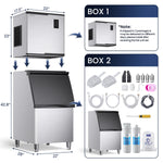 - ROBUST ICE MAKING CAPACITY: Rapid ice making with innovative technology, 5 to 15 min cycle, this commercial ice maker machine can easily produce up to 550lbs of clear full dice ice cubes daily. Paired with a roomy storage bin of 360 lbs, it provides a reliable and efficient ice-making system to meet the demands of your business.