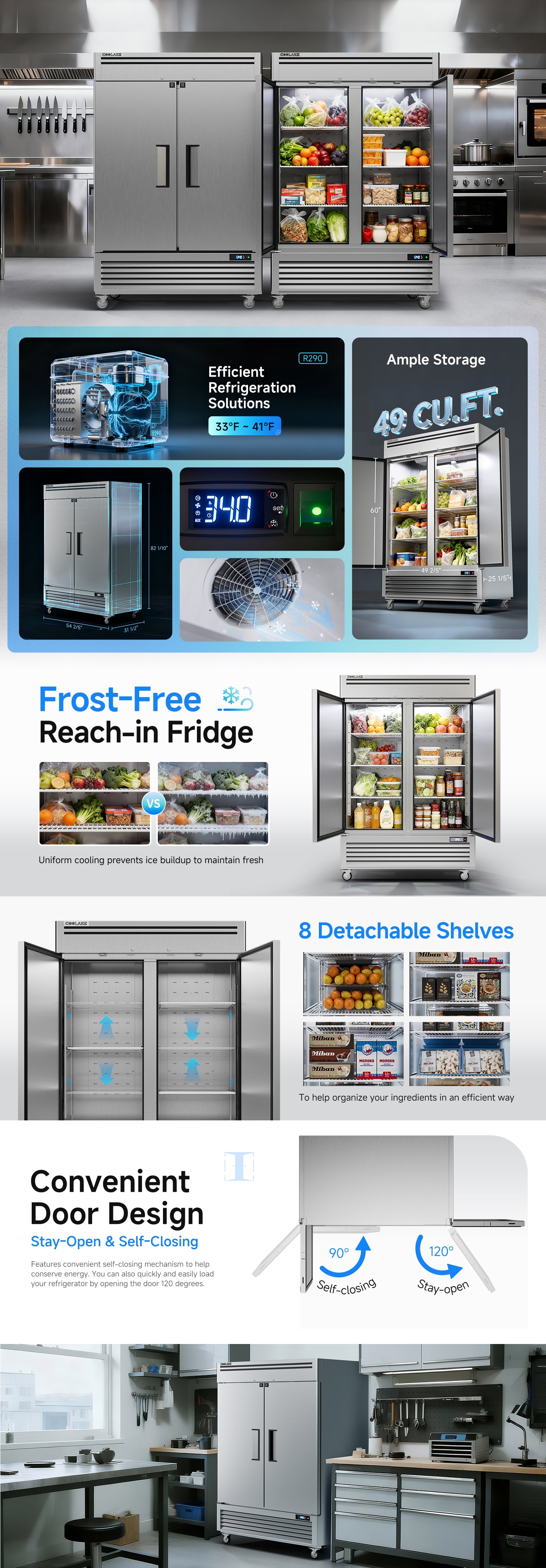 A commercial refrigerator is like a high-performance sports car for food storage—built for speed, durability, and efficiency. Just as a sports car easily handles tough roads, a commercial fridge keeps food fresh even in the busiest kitchens. With its reliable performance and energy-efficient design, the Coolake two-door reach-in refrigerator is a vital addition to any commercial kitchen seeking to enhance its frozen storage capabilities.