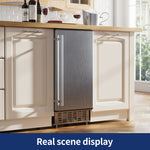 - Undercounter or Freestanding Installation: Due to the Slim 15-inch width for narrow undercounter applications and front breathing vents, this ice maker can be installed as either free-standing or built-in to existing cabinetry for a more seamless look in your kitchen. This unit is 33" in height to fit under lower ADA-compliant counters. Make sure that your unit is nice and level with the included leveling legs.