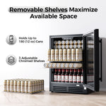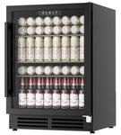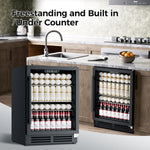 Crafted from premium black stainless steel frame with a tempered glass door, it blocks heat for optimal insulation. A fan-forced circulation system maintains 33–65°F via touchscreen controls, keeping soda cans to wine bottles perfectly chilled. Three removable shelves let you organize drinks: separate alcohol, fit large bottles, or expand soft drink storage. The 24-inch undercounter design fits kitchens, dining areas, or wet bars without crowding.