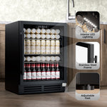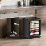 • Premium Design: Crafted with a corrosion-resistant black coated stainless steel exterior, this drink cooler blends seamlessly with any decor. It's 2-layer tempered glass blocks external heat and retains cold air for efficient cooling, making it a versatile addition to residential settings