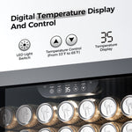 • Temperature Control and Settings: This under counter refrigerator equips with a digital thermostat featuring an external display, offering temp readings and LED light control. The 33–65°F range keeps canned and bottled drinks at optimal drinking temps without freezing. Interior LED lighting emits a soft, bright glow, ideal for basements, garages, or dim spaces